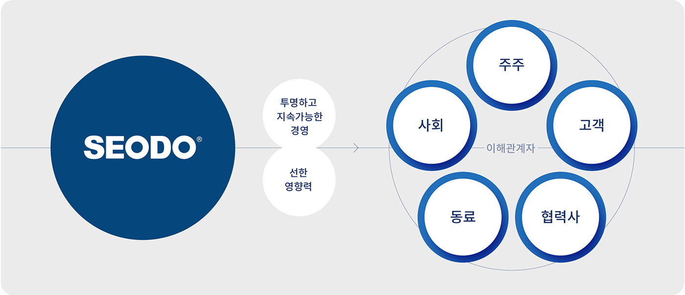 Seodo will become a company that exerts a positive influence on the world through 'Transparent and sustainable management'.